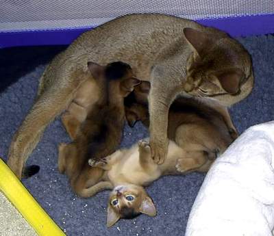 Sie bekam einen schönen und ausgewogenen Wurf mit 4 kleinen Rackern.